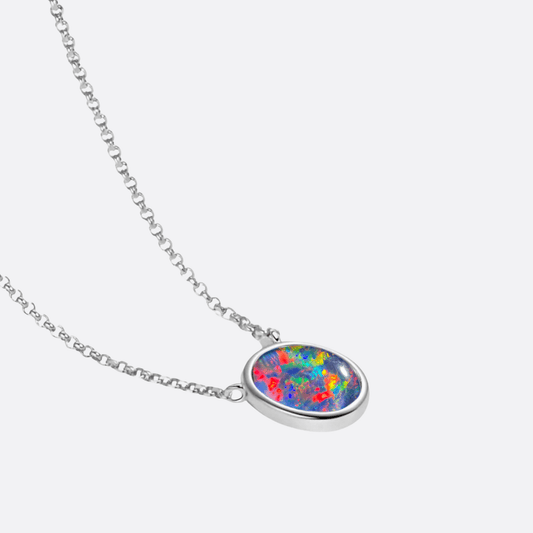 Ellipse of Flame Blue/Green 925 Silber | Echter Opal auf schwarzem Untergrund