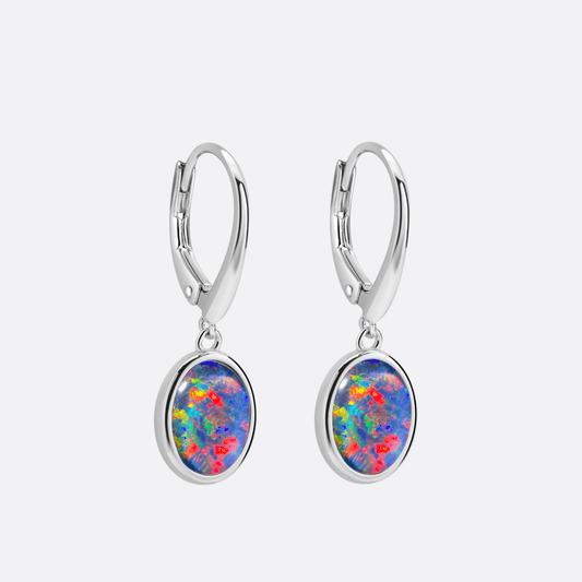Ellipse of Flame Red - Komplett-Set 925 Silber | Echter Opal auf schwarzem Untergrund