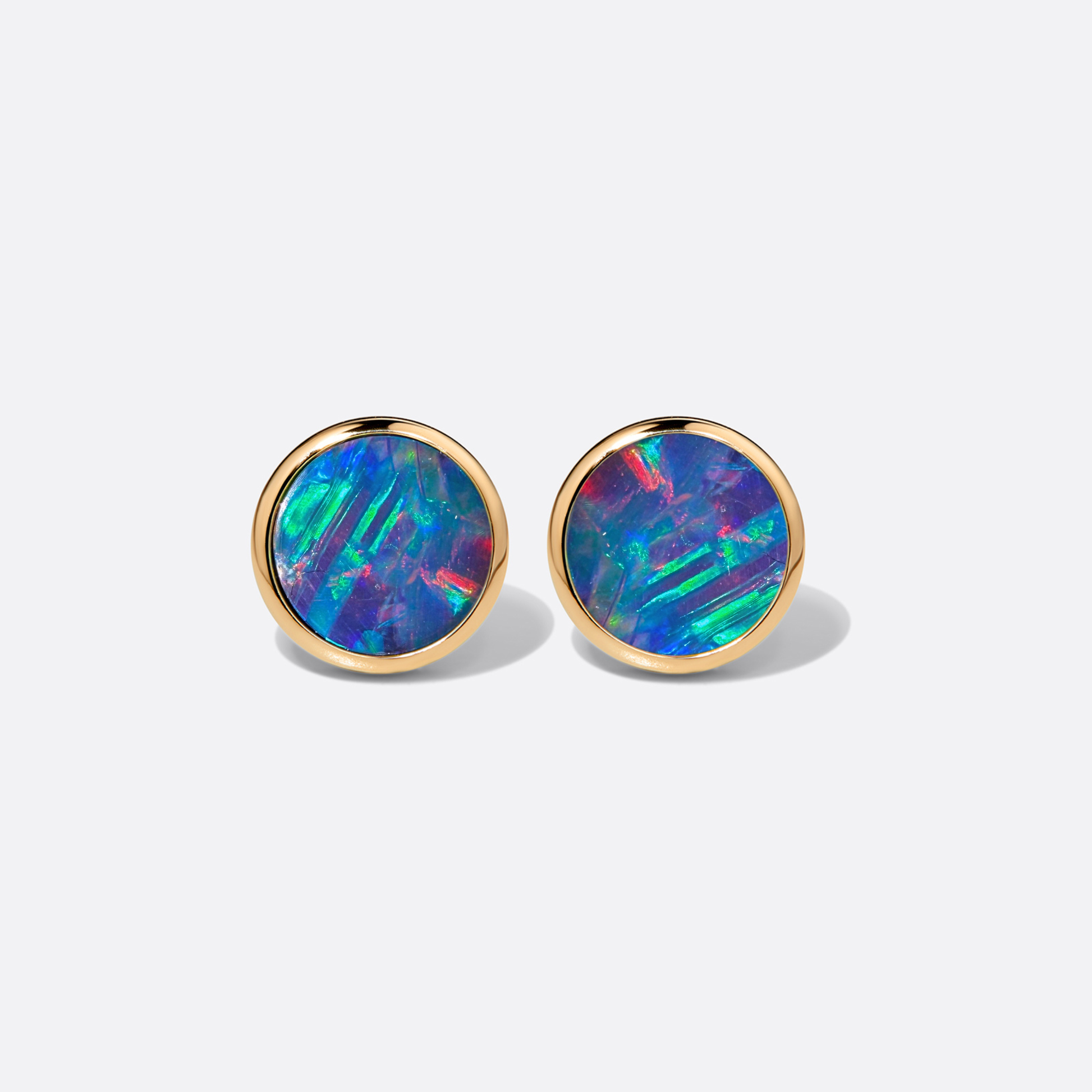 Ohrring | 18K Gold | Natural Opal on Black Backing