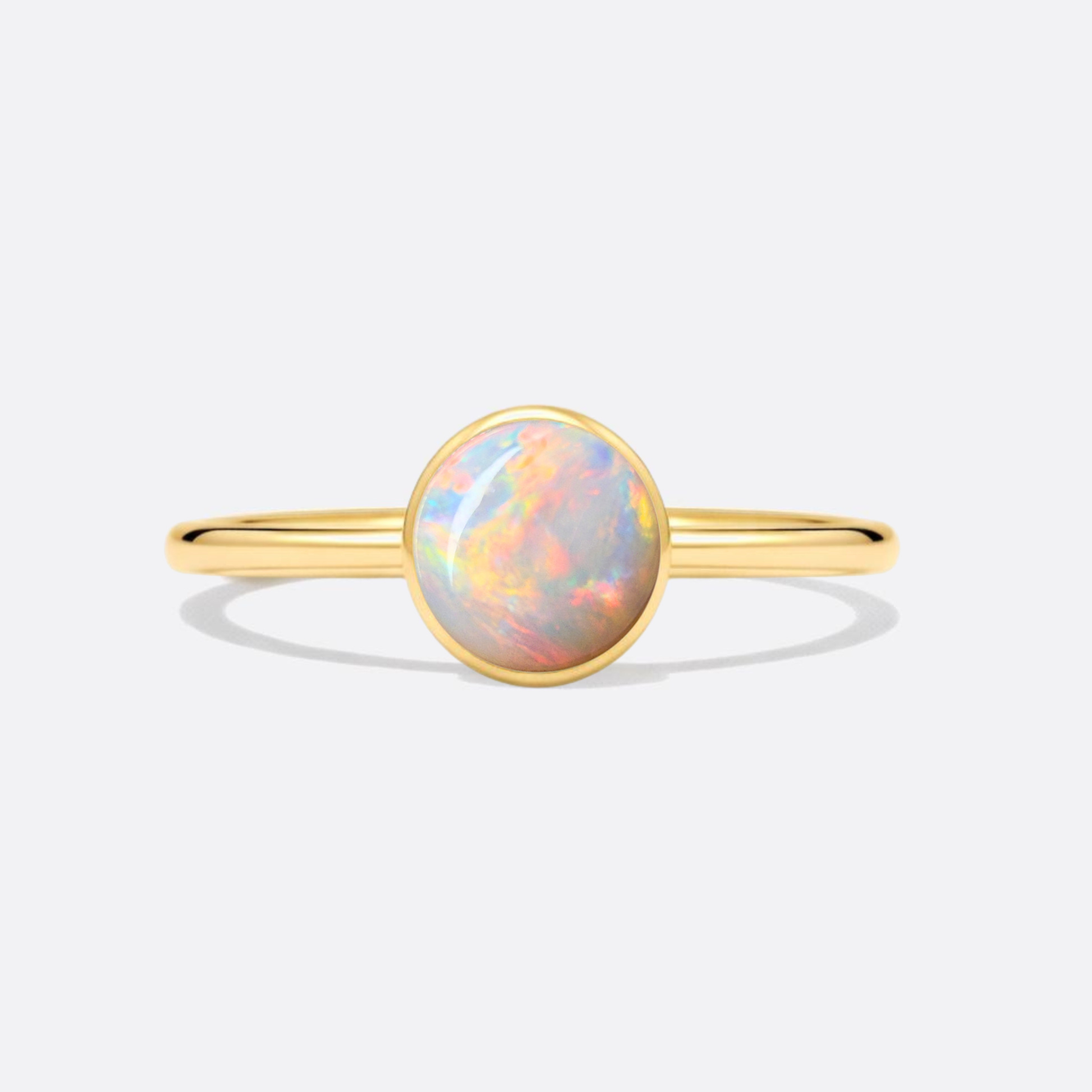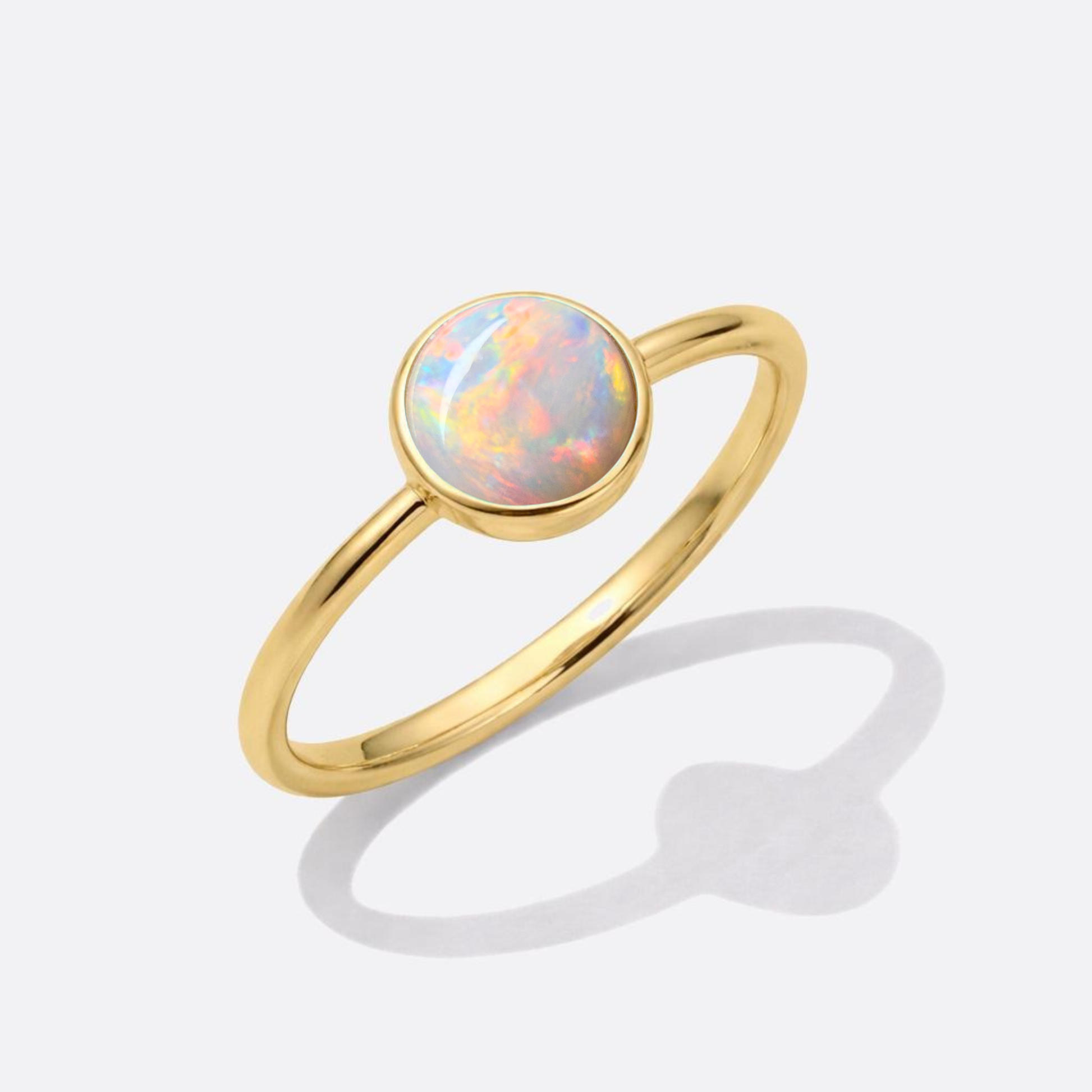 Gold in a round shape – reduced to the essentials. At the center: an opal that shines in every color.