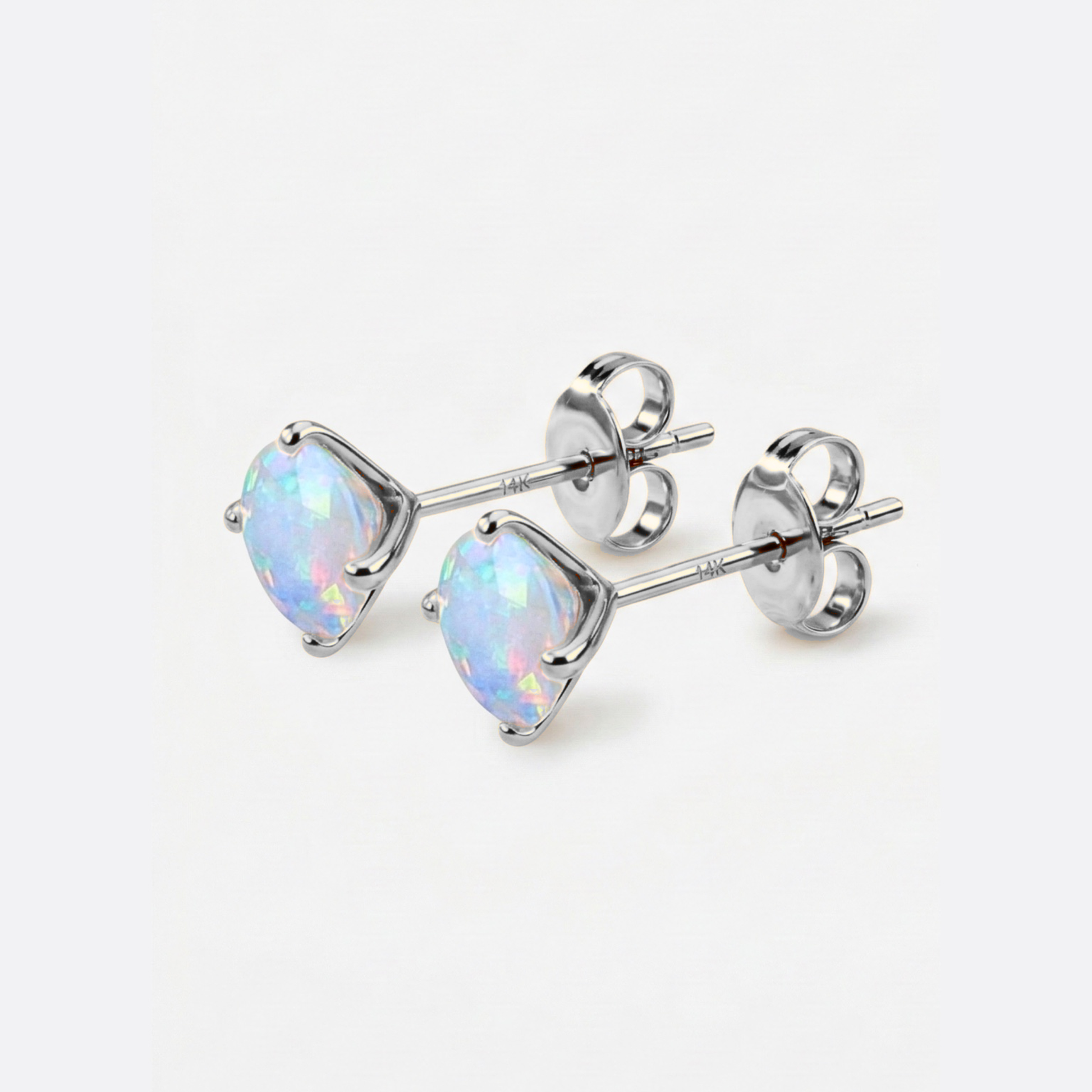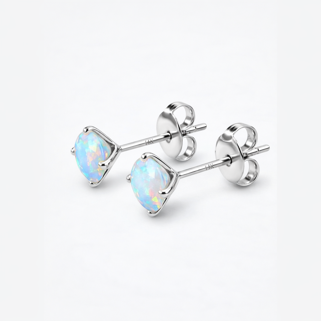 Jede Facette ein neuer Blickwinkel, jeder Lichtstrahl ein neues Farbenspiel. Der echte Opal im Diamantschliff, eingefasst in 14K Weißgold, bringt eine Tiefe ans Ohr, die man sonst nur in der Natur findet. Filigran in der Form, kompromisslos in der Wirkung. Verfügbar in verschiedenen Größen.