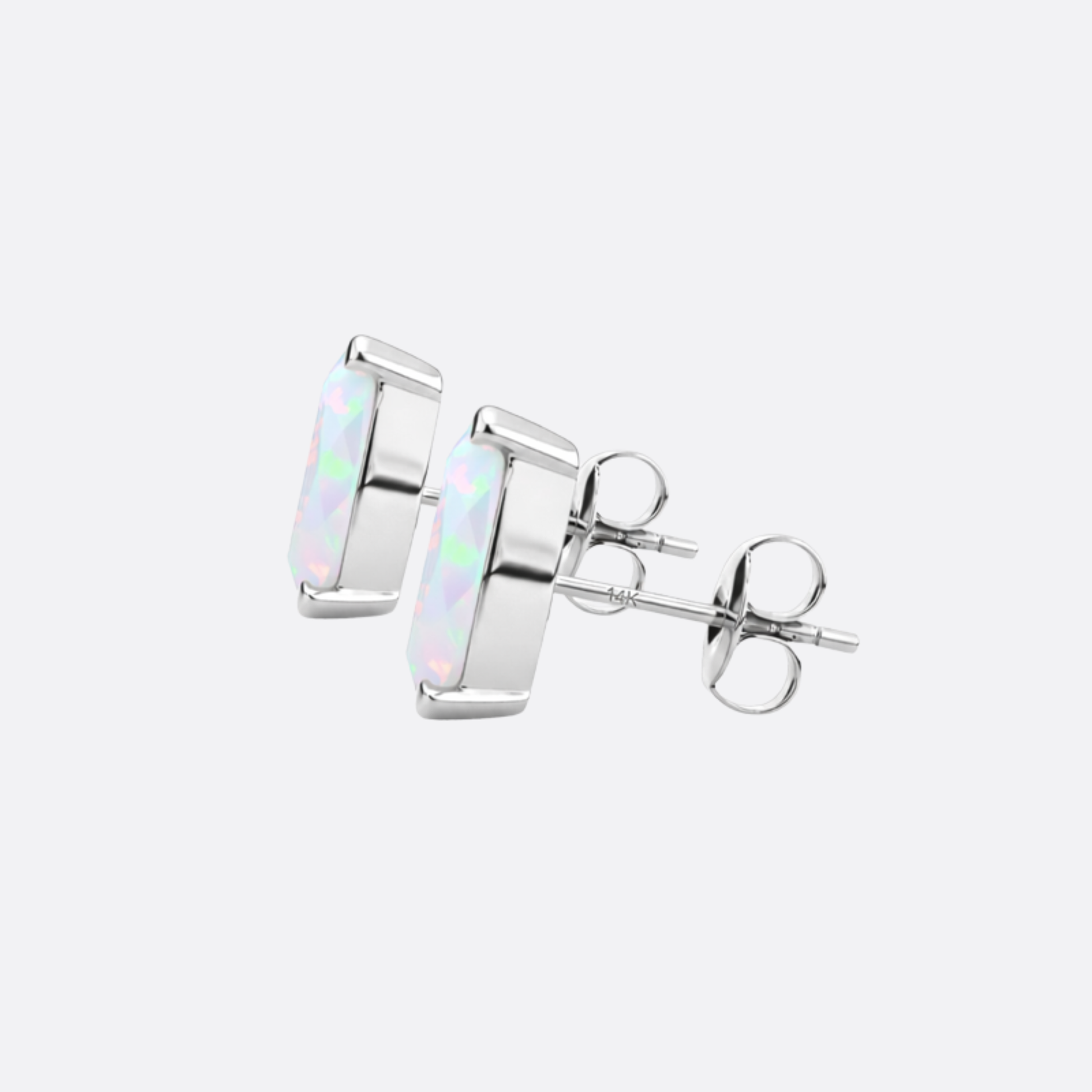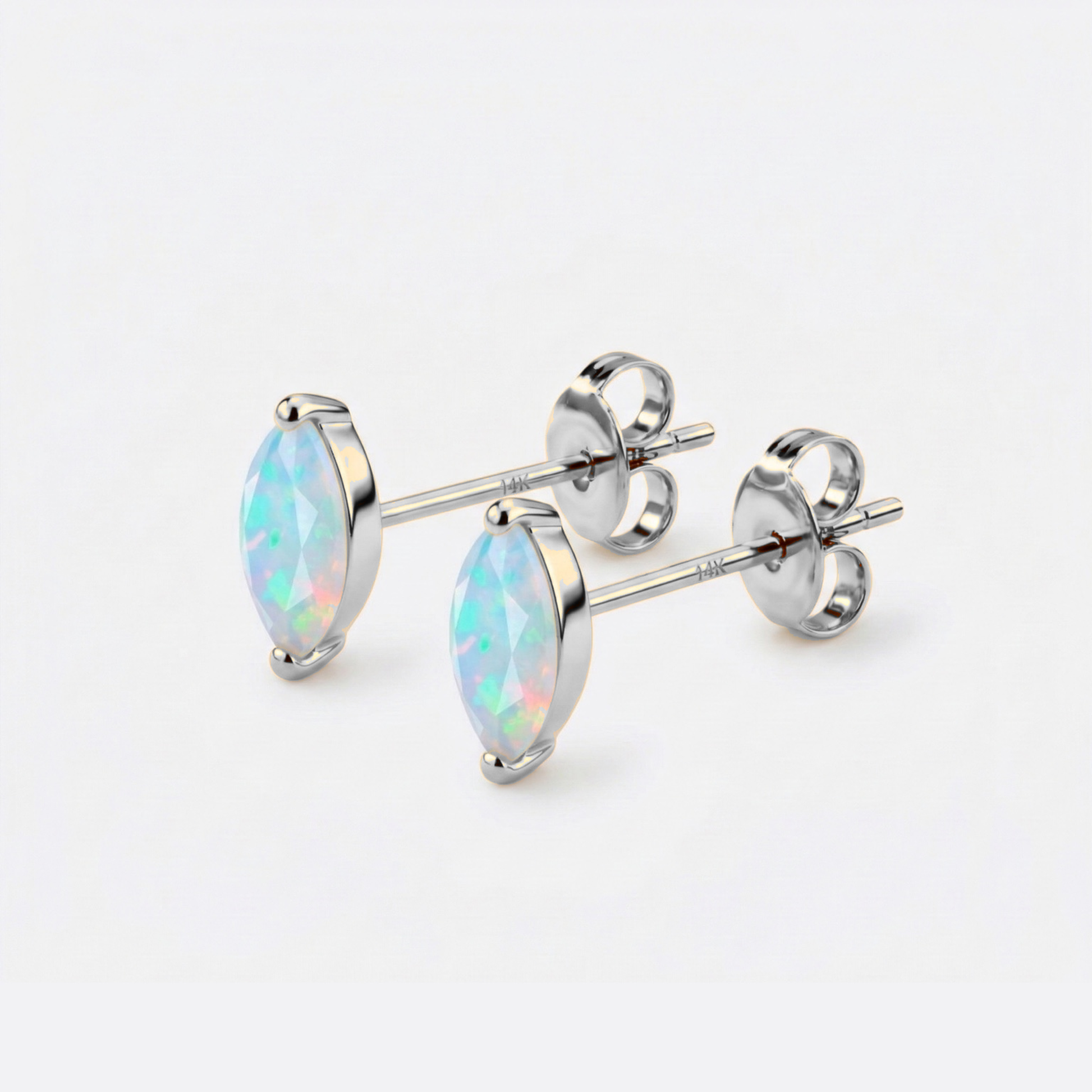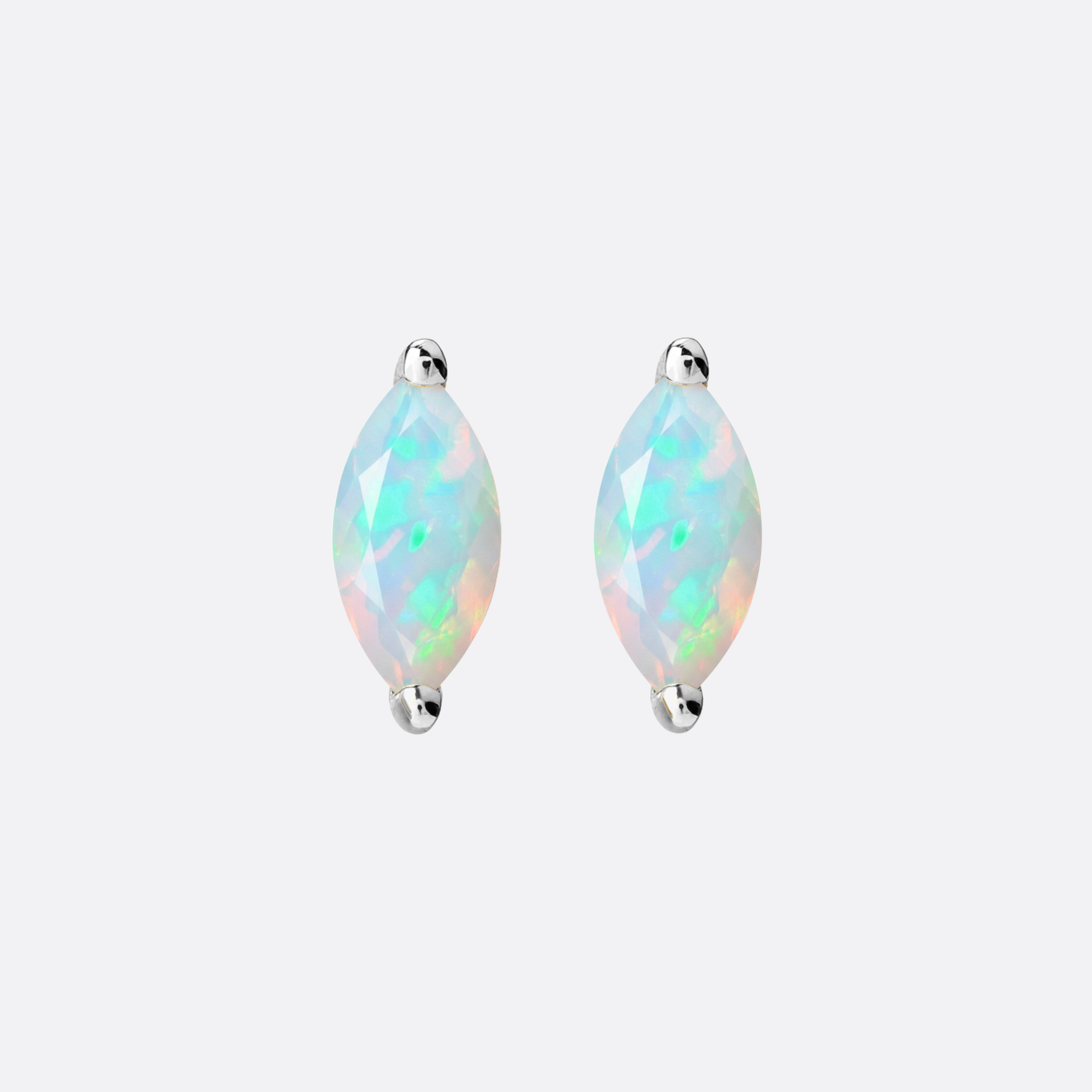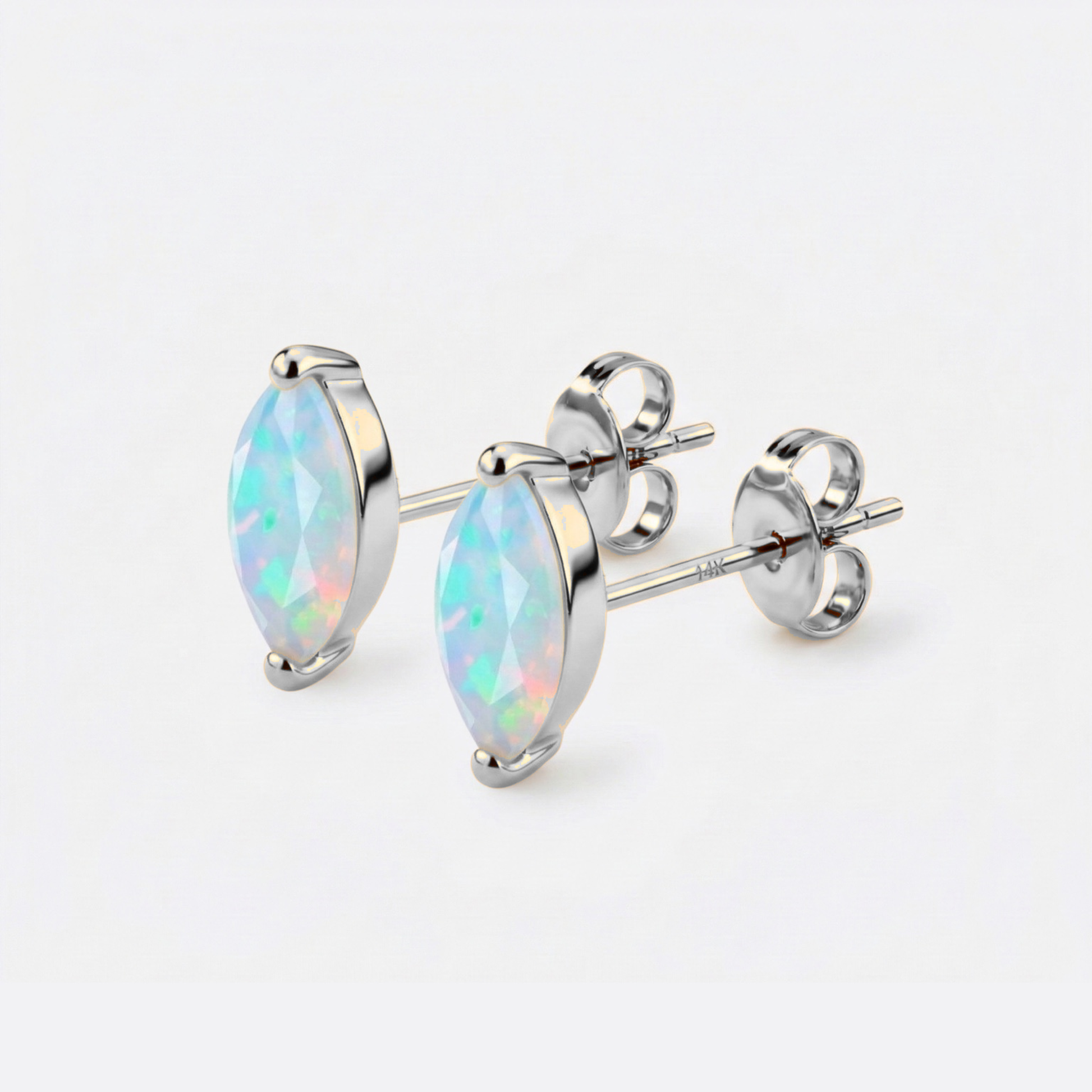 Ohrring | 14K Weißgold | bunter Opal - Marquiseschliff