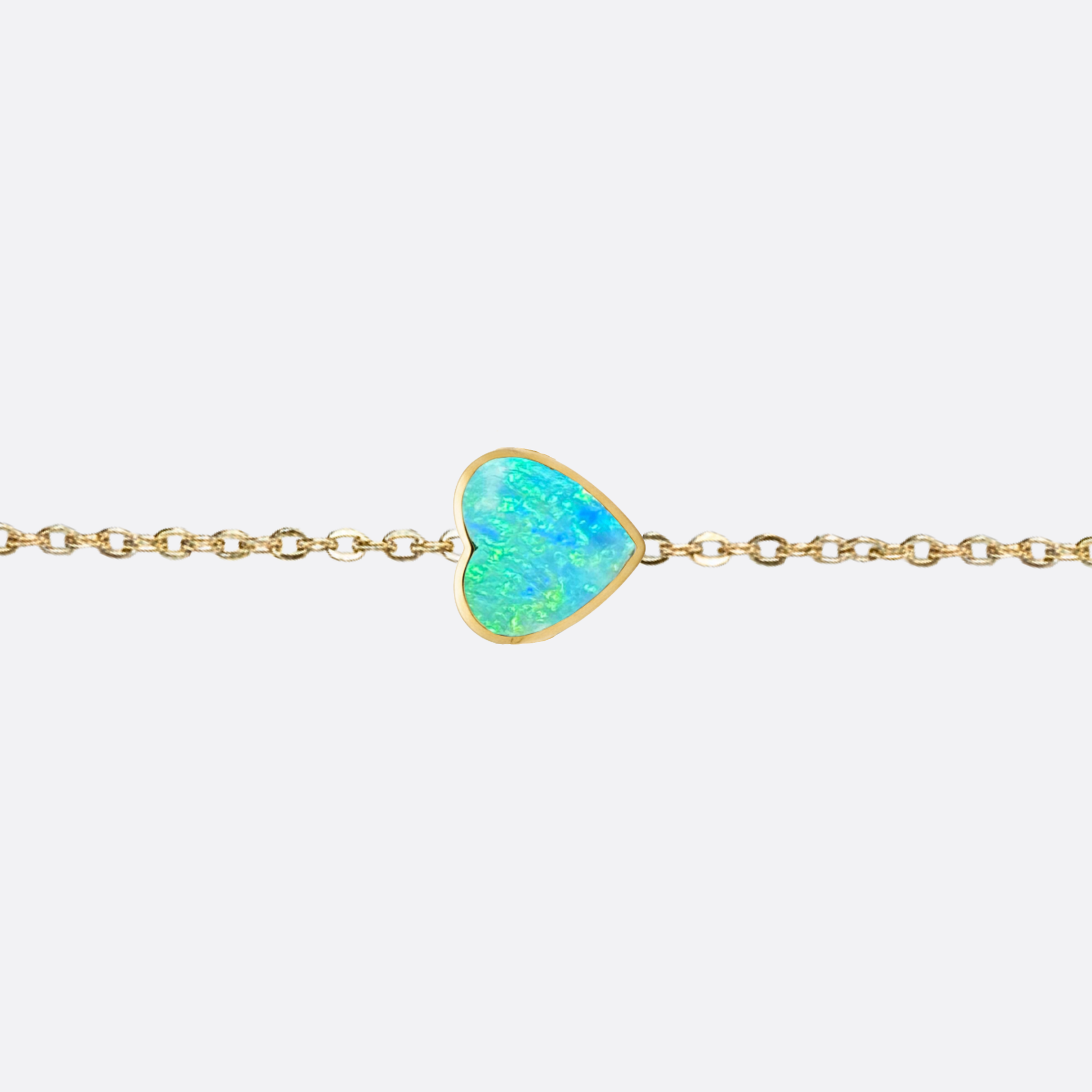 Das Herz – seit jeher Symbol für Liebe, Nähe und Verbundenheit. Im Armband wird es zum leuchtenden Mittelpunkt, eingefasst in feines 14K Gold. Ein Zeichen, das bleibt, ohne sich aufzudrängen.