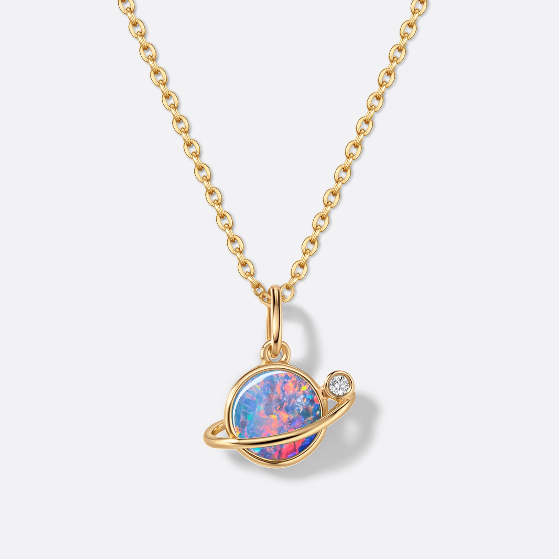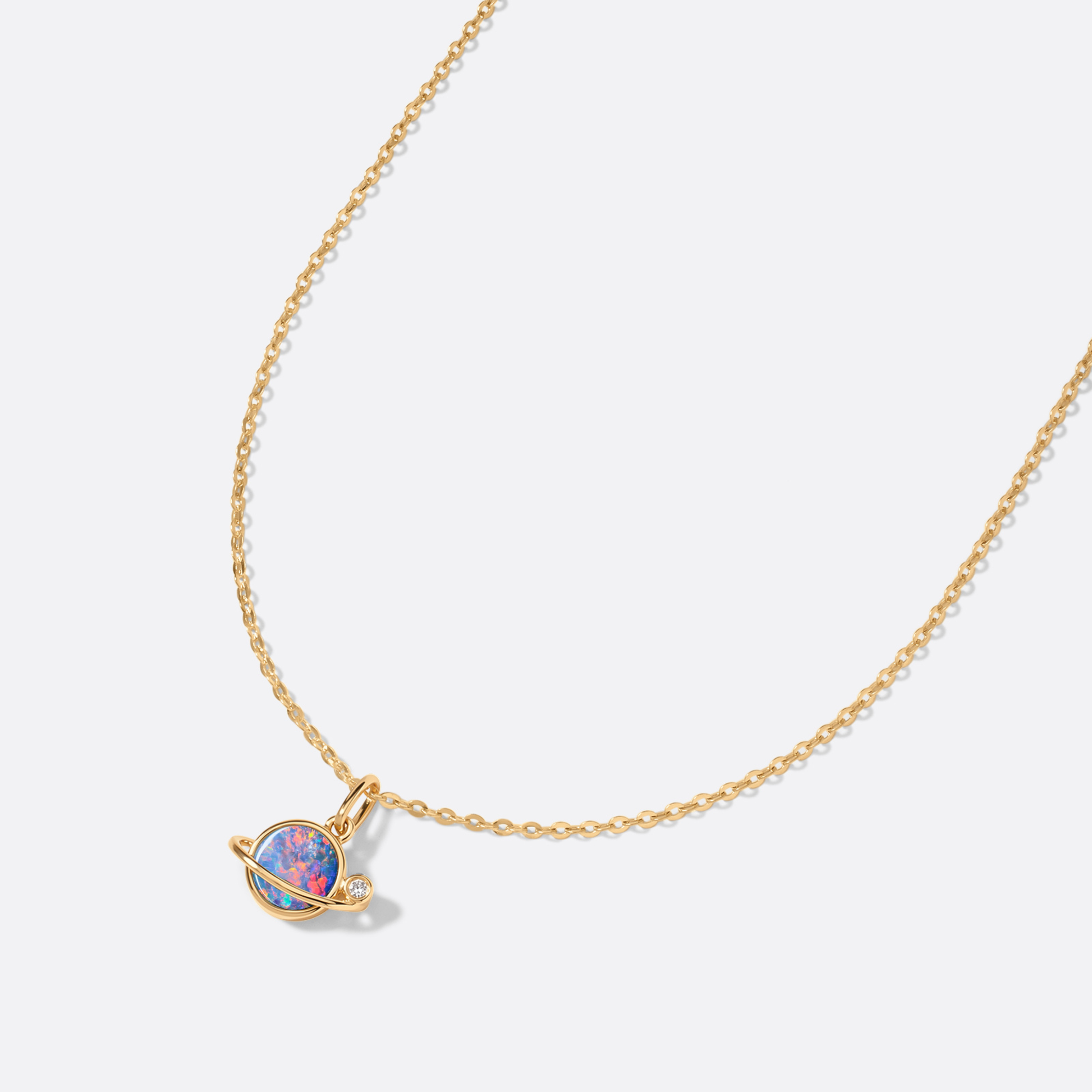 Saturno è ispirato all’iconico anello di Saturno – simbolo di saggezza, tempo e struttura interiore. L’opale rappresenta il pianeta, circondato da una fascia d’oro che raffigura il proprio percorso di vita. Un diamante segna la stella polare, che dona orientamento e chiarezza. Questa collezione incarna eleganza, concentrazione e forza: un messaggio silenzioso per donne che determinano la propria orbita.