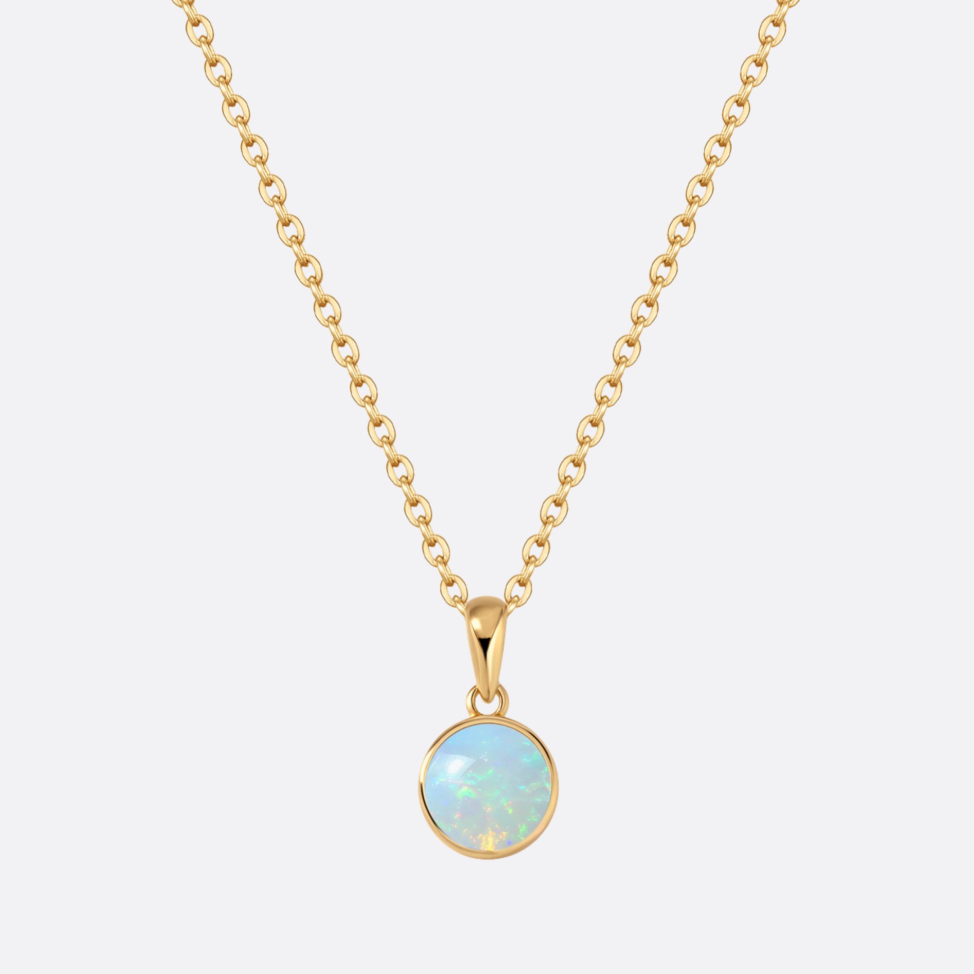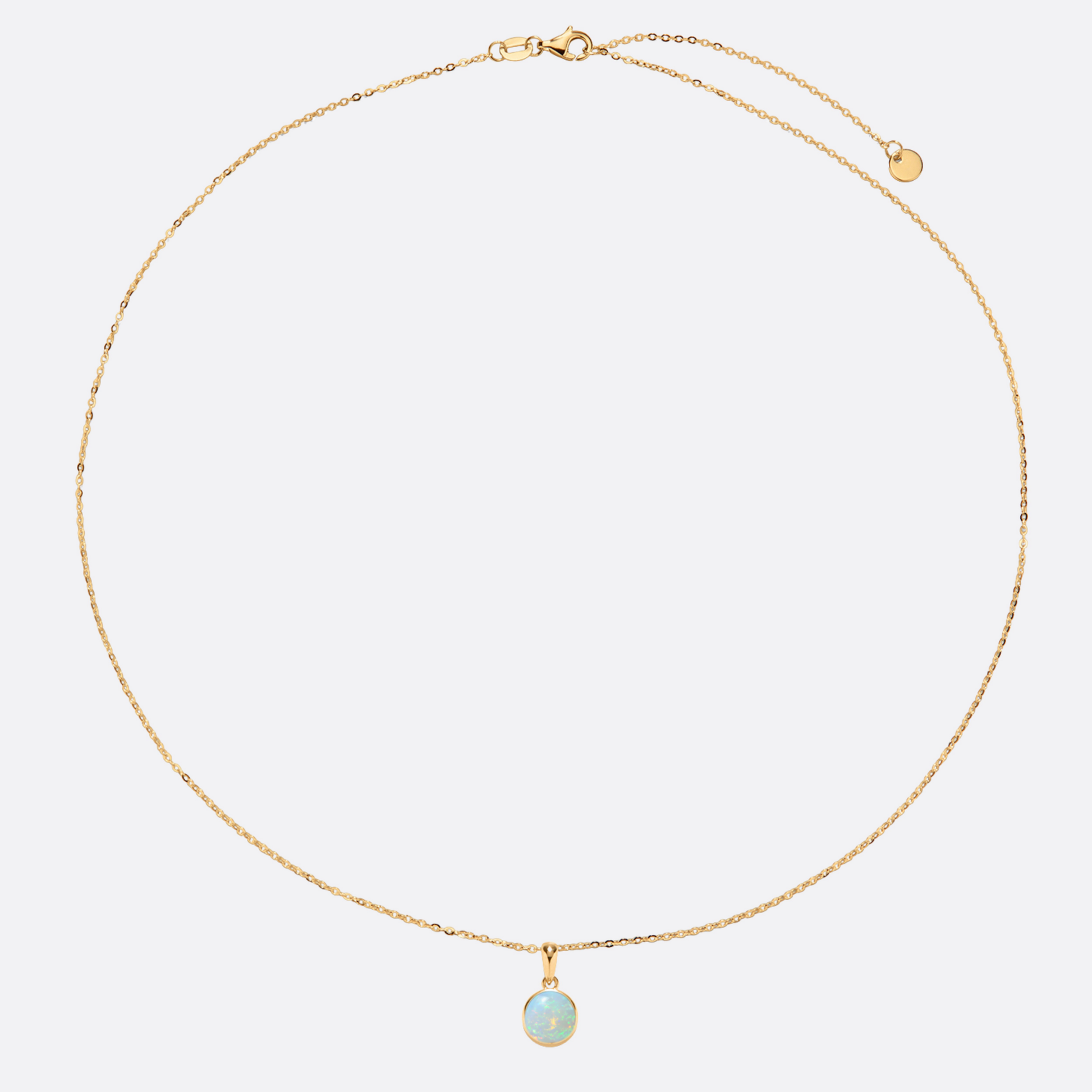 So einfach. So stark. Der Kreis aus Gold hält einen Opal, der leuchtet, pulsiert, lebt. Ein ruhiger Rahmen für ein intensives Zentrum – getragen nah am Herzen.
