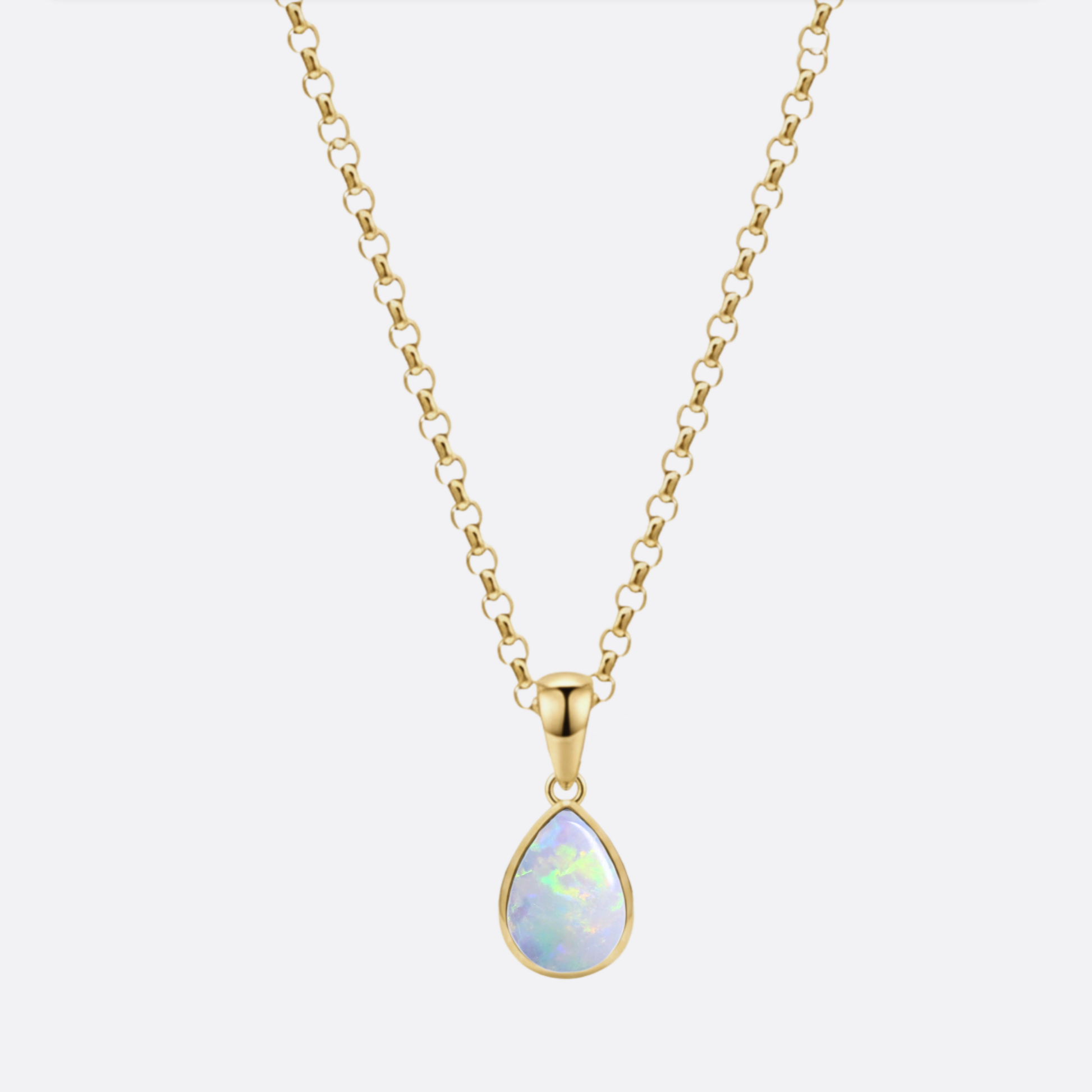 So einfach. So stark. Der Tropfen aus Gold hält einen Opal, der leuchtet, pulsiert, lebt. Ein ruhiger Rahmen für ein intensives Zentrum – getragen nah am Herzen.