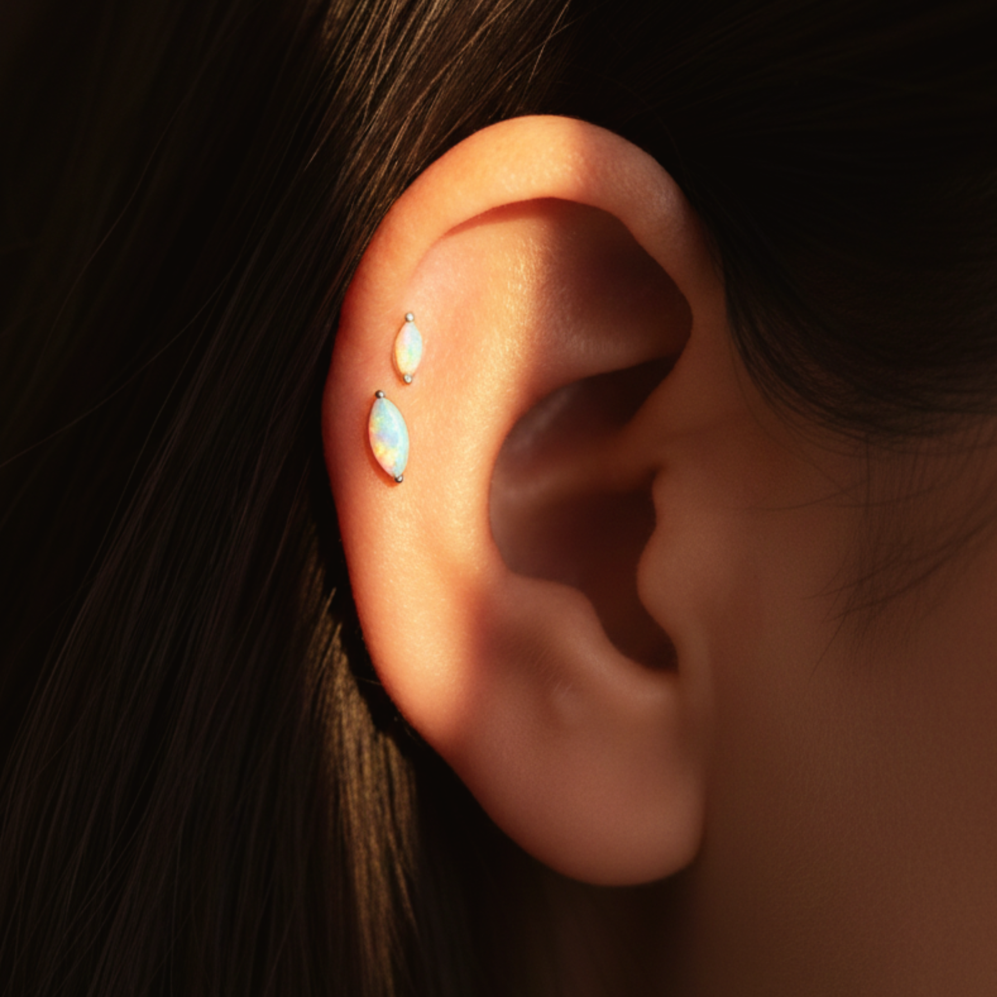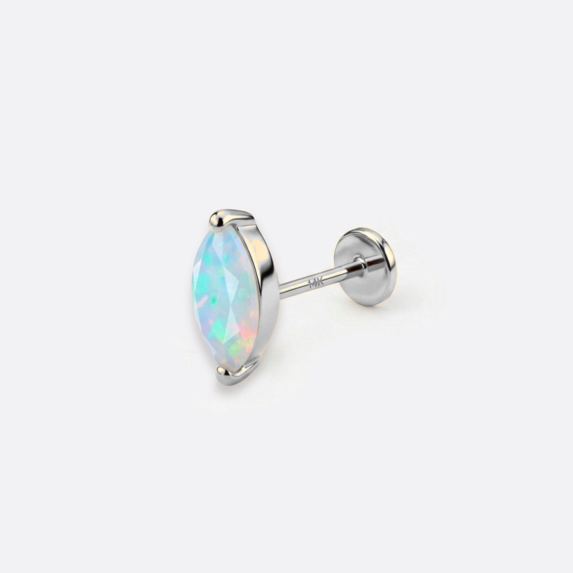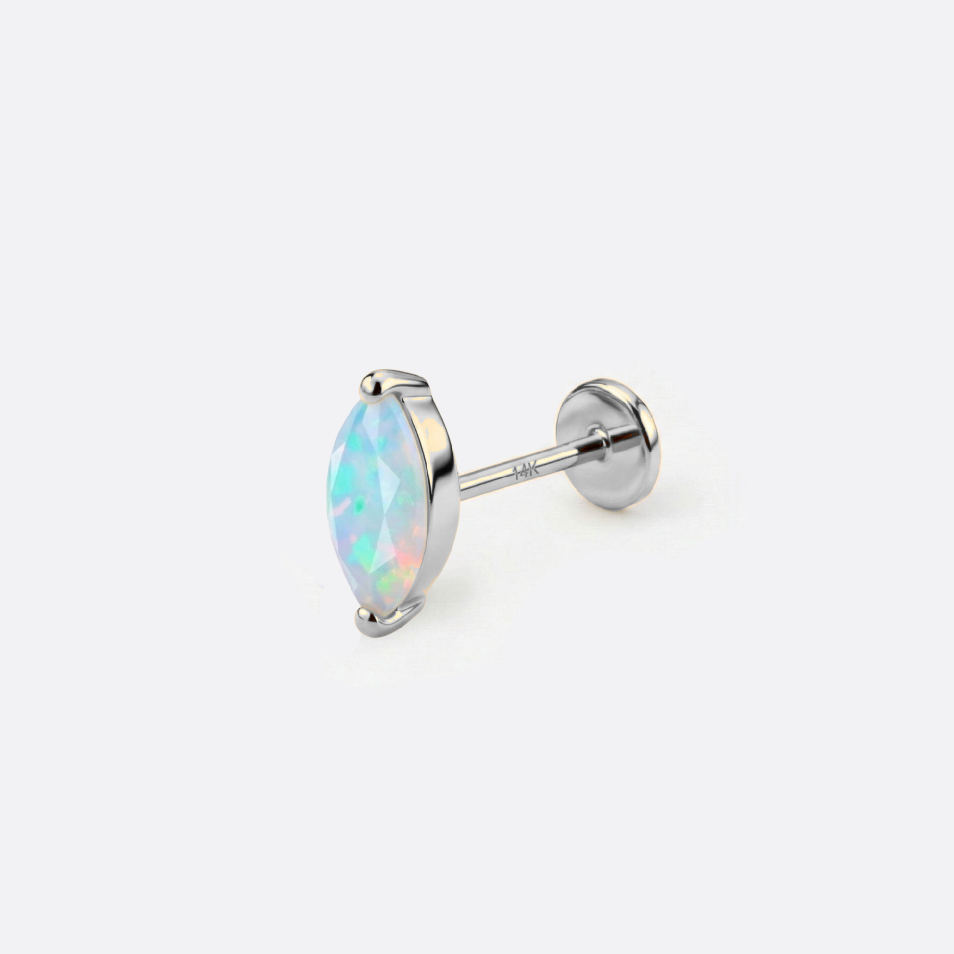 Piercing | 14K Weißgold | bunter Opal - Marquiseschliff