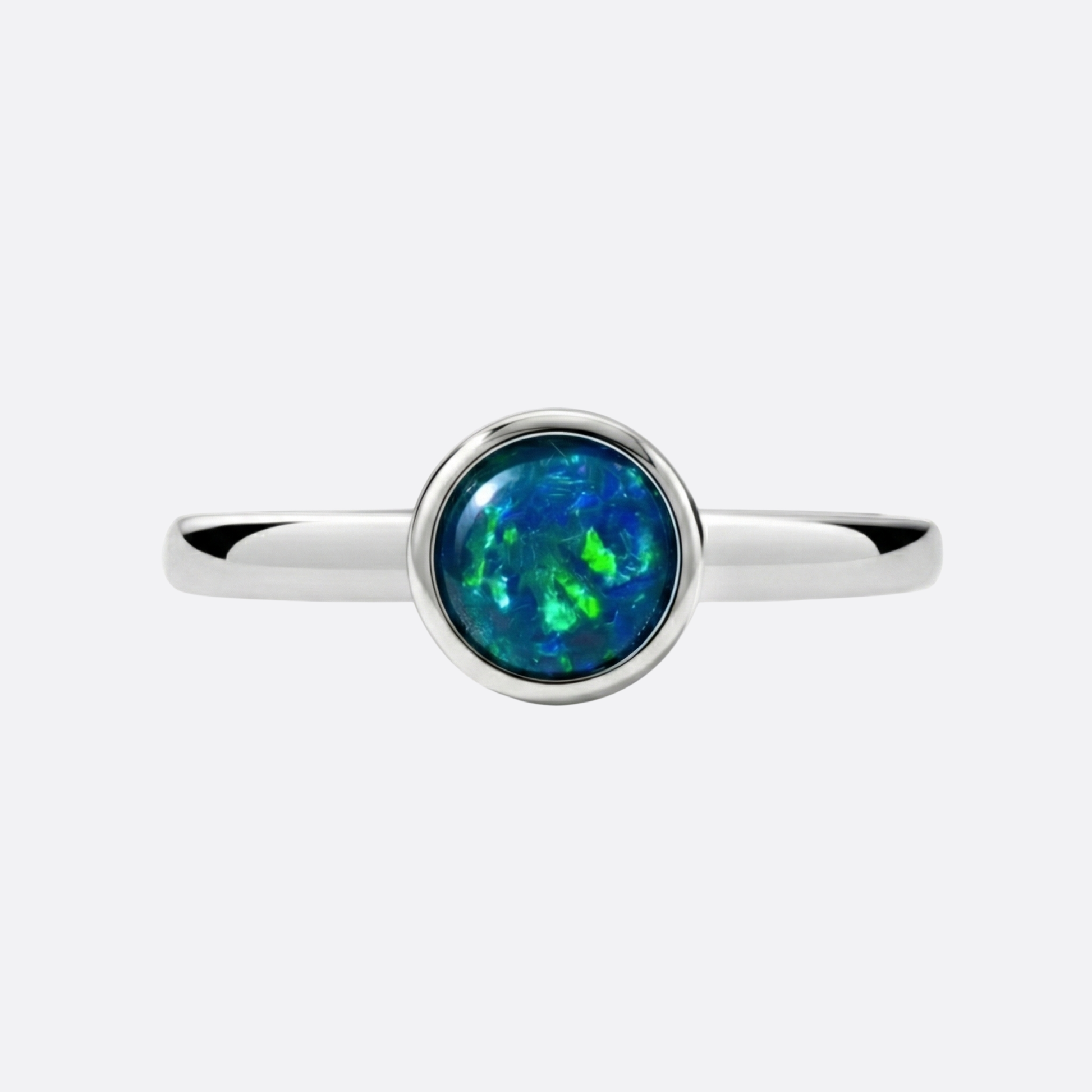 Ein echter, runder Opal, der alle Farben in sich trägt – ein Farbfeuerwerk am Finger.