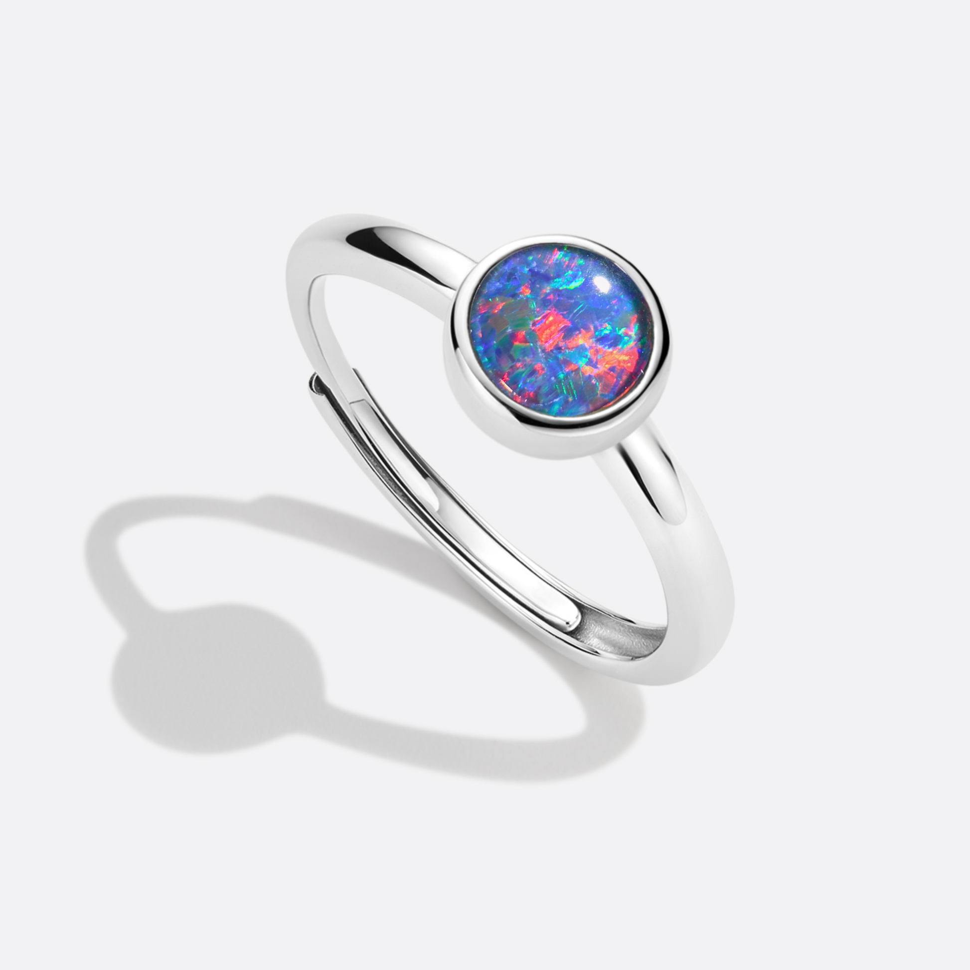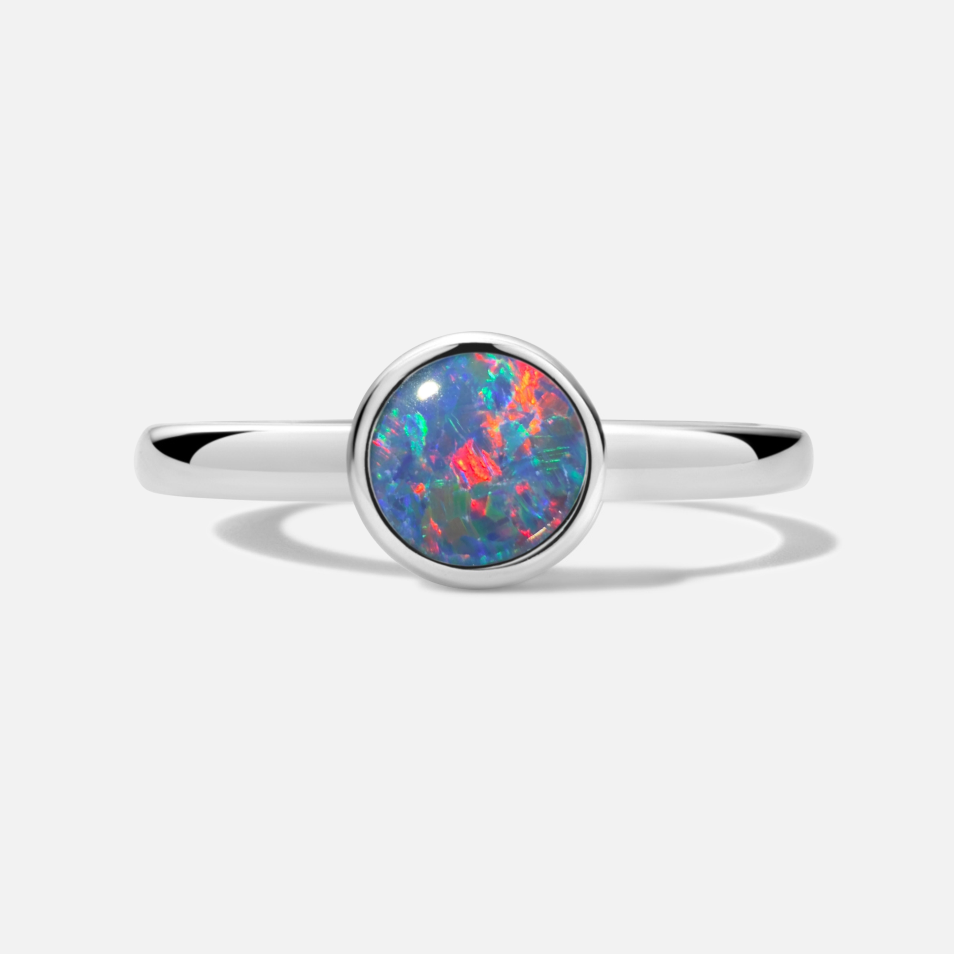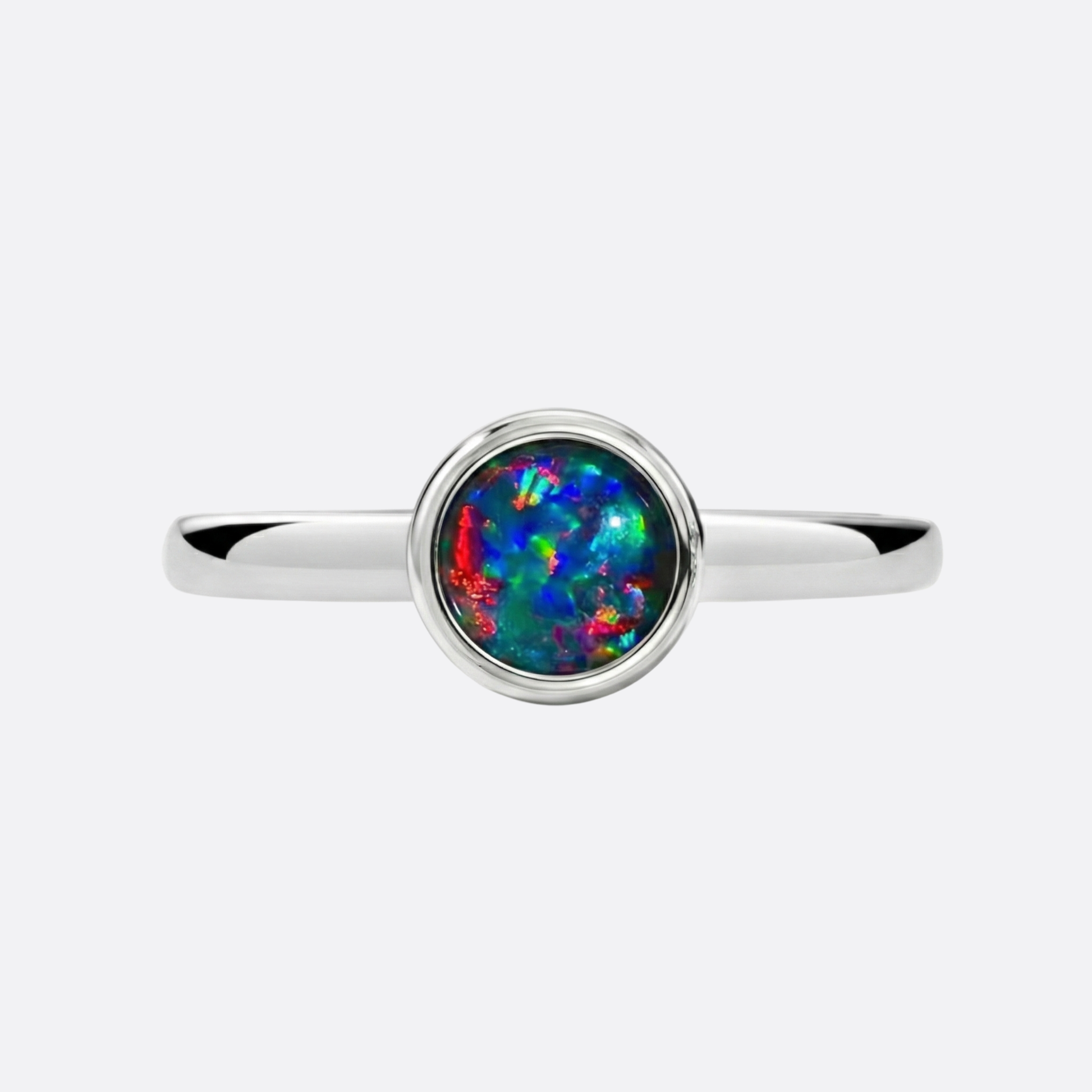 Ein echter, runder Opal, der alle Farben in sich trägt – ein Farbfeuerwerk am Finger.