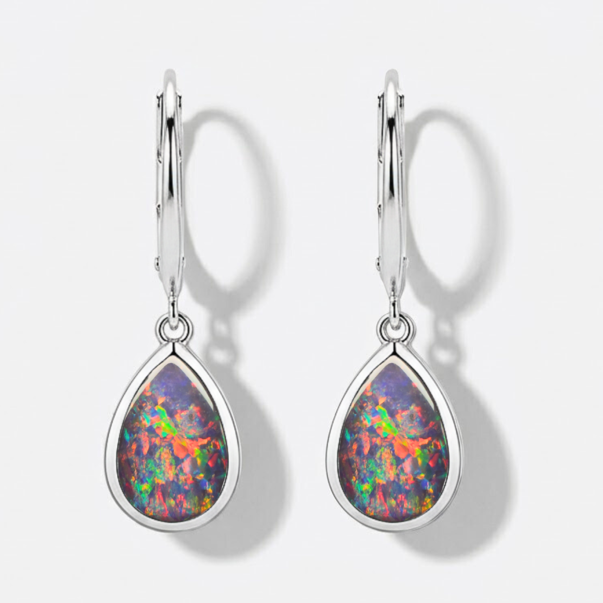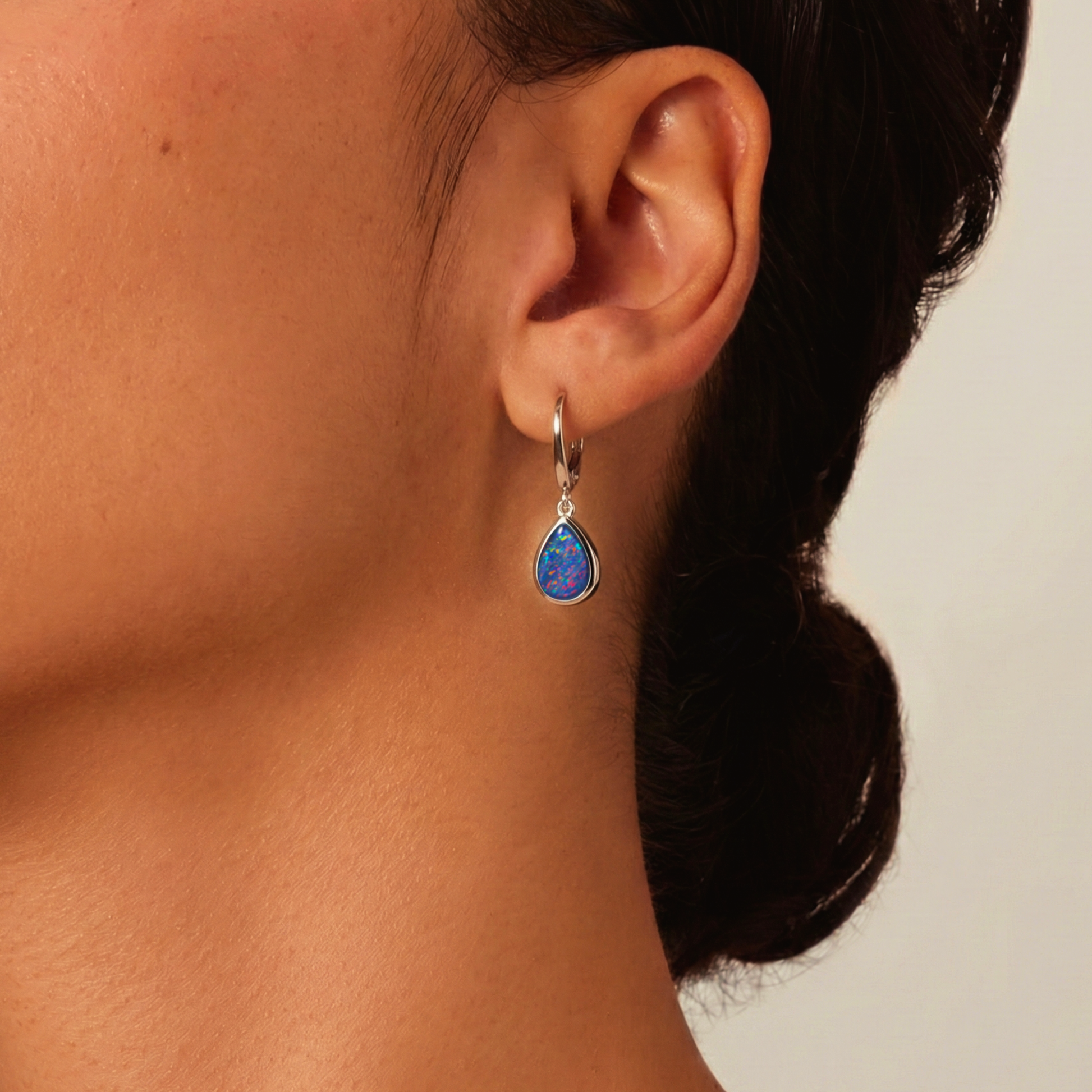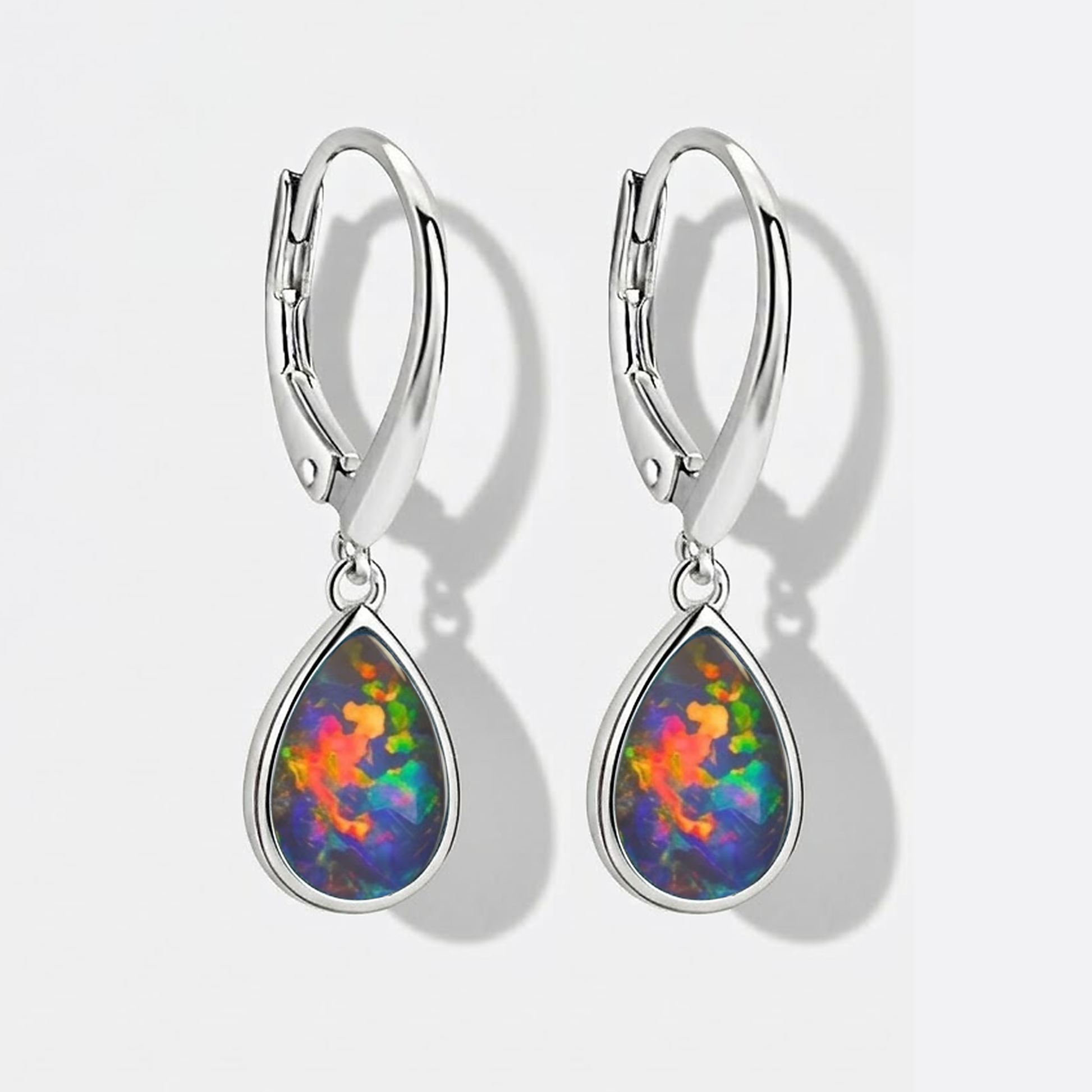 Ohrring | 925 Silber | Echter Opal auf schwarzem Untergrund