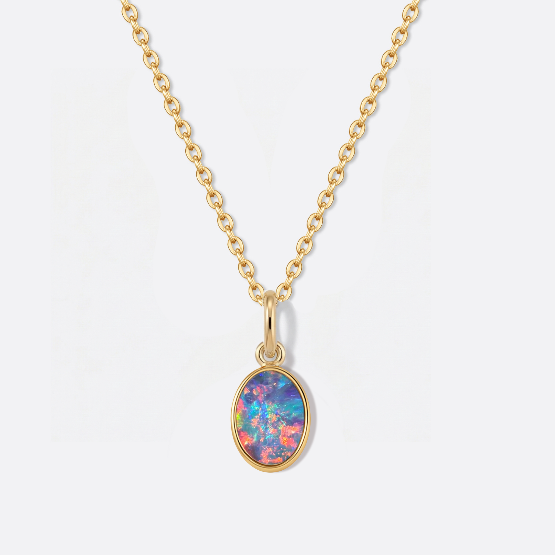Kette | 14K Solid Gold | Echter Opal auf schwarzem Untergrund