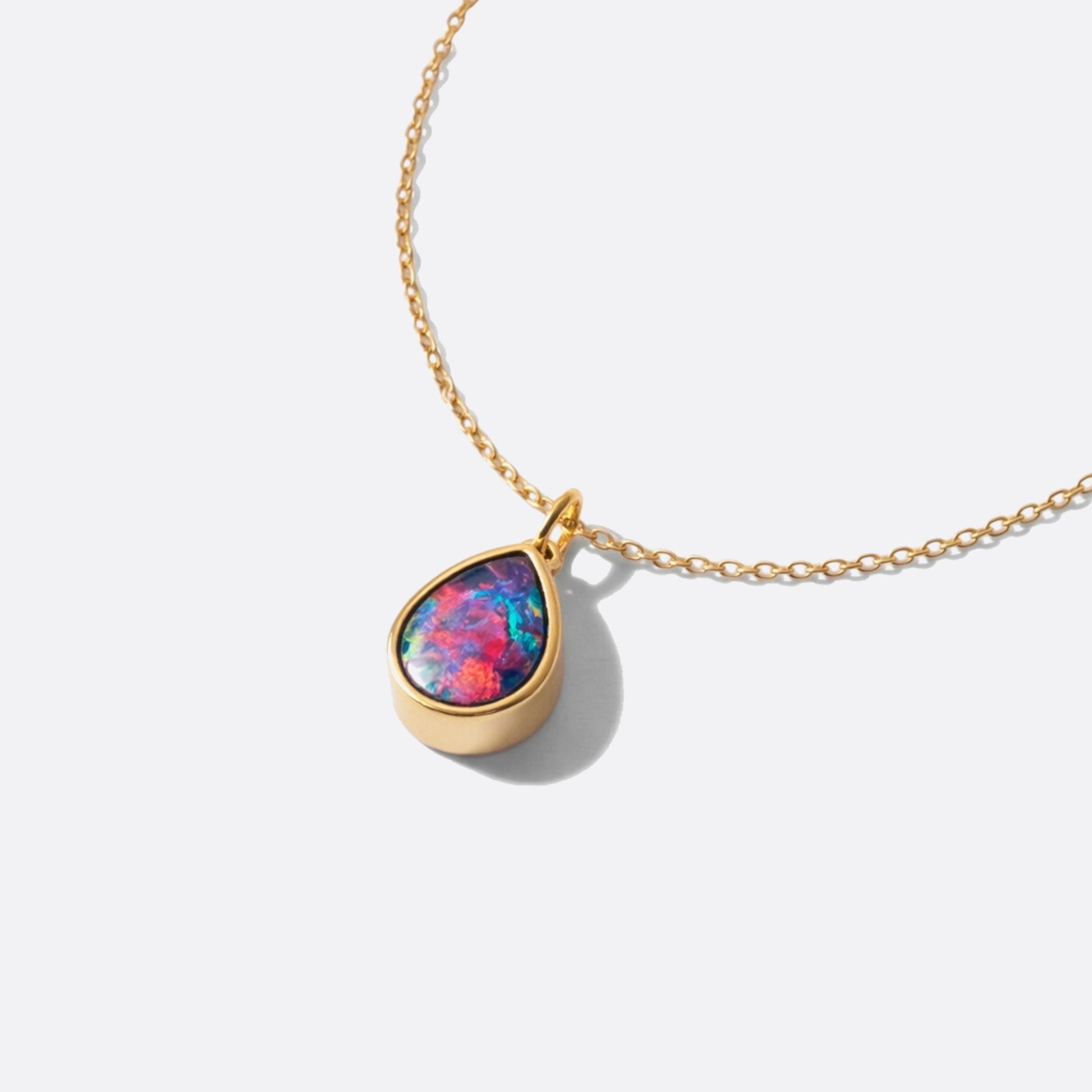 Kette | 14K Solid Gold | Echter Opal auf schwarzem Untergrund