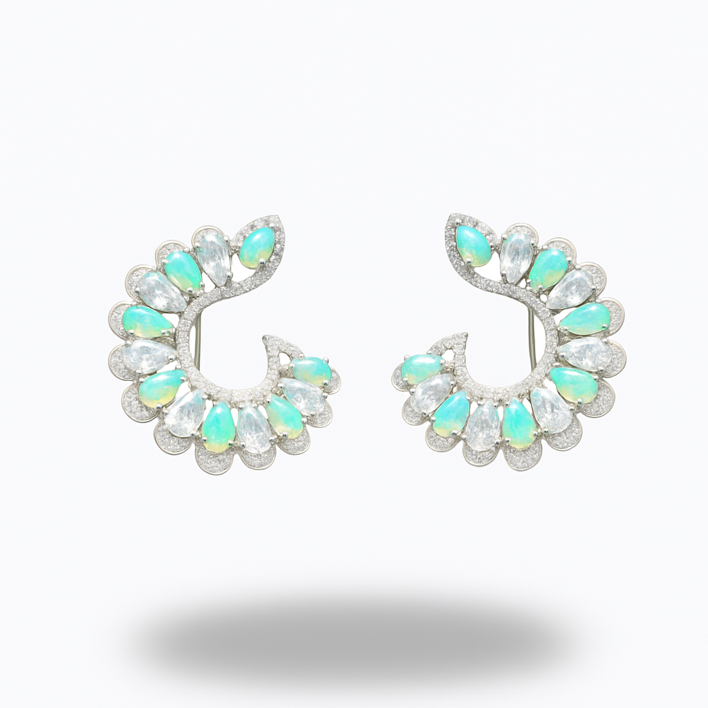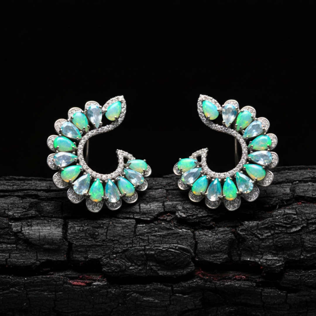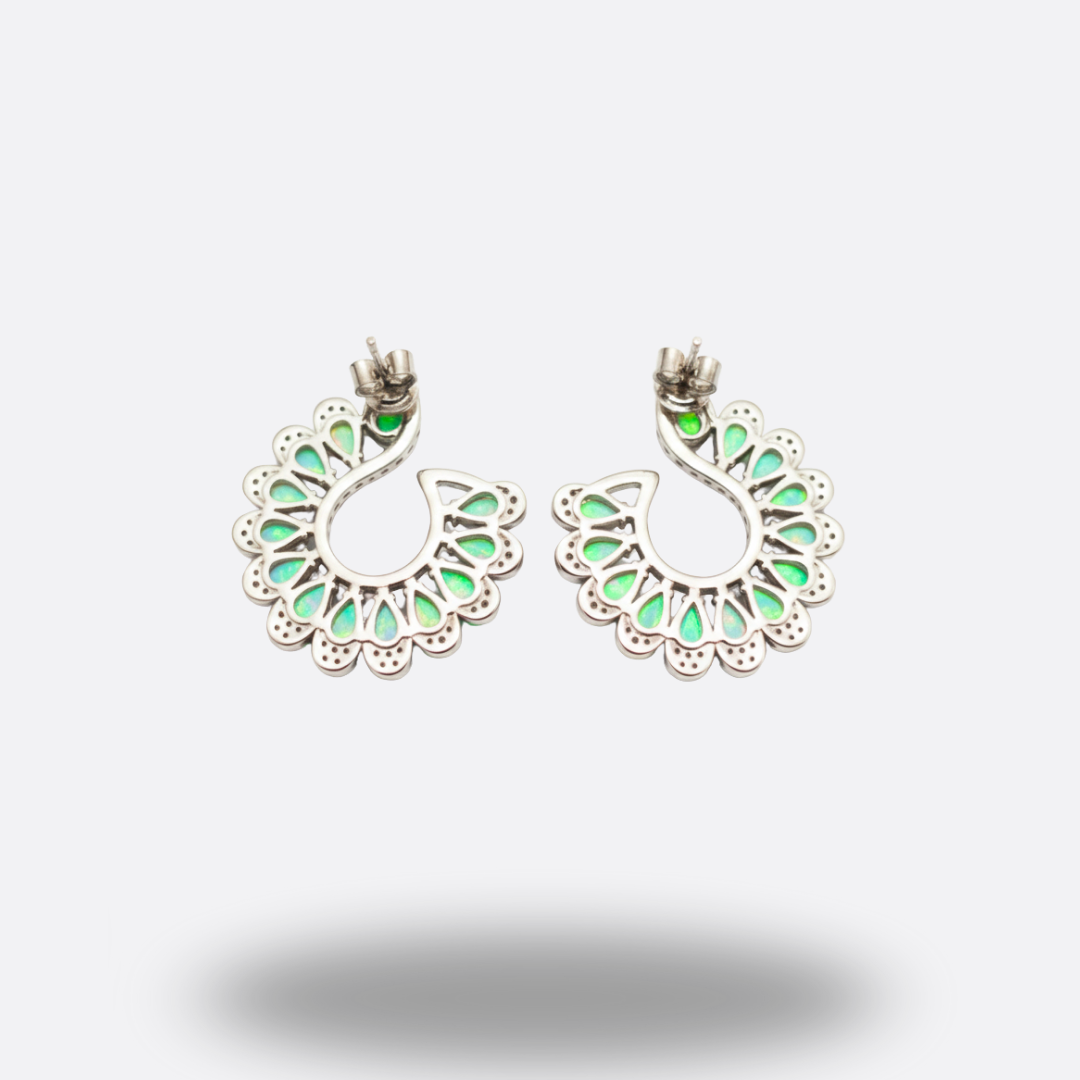 Farben, die wie Regentropfen leuchten – mehrere Opale in Tropfenform. Diese Ohrringe tanzen mit dir. Silber bildet den Rahmen, du das Strahlen.