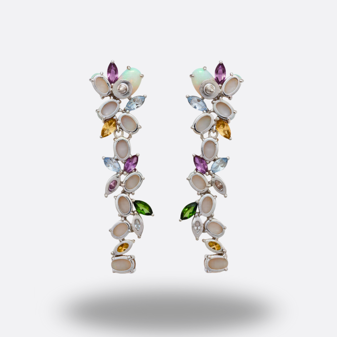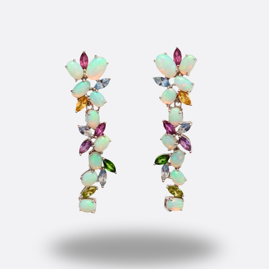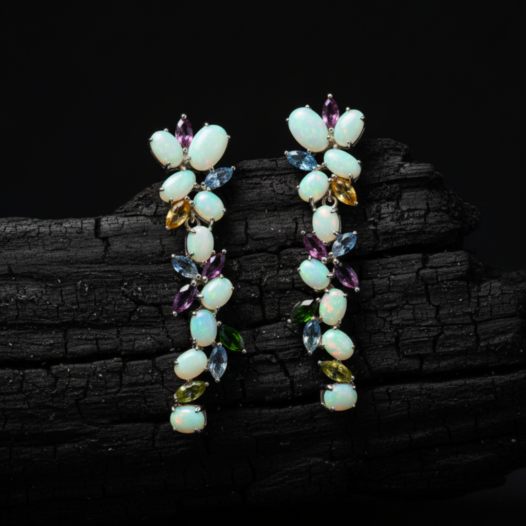 Ovale Opale, weich geschwungen, fangen das Licht in jedem Winkel. In Silber gefasst entfalten sie Bewegung und Ausstrahlung – tragbare Energie für jeden Moment.