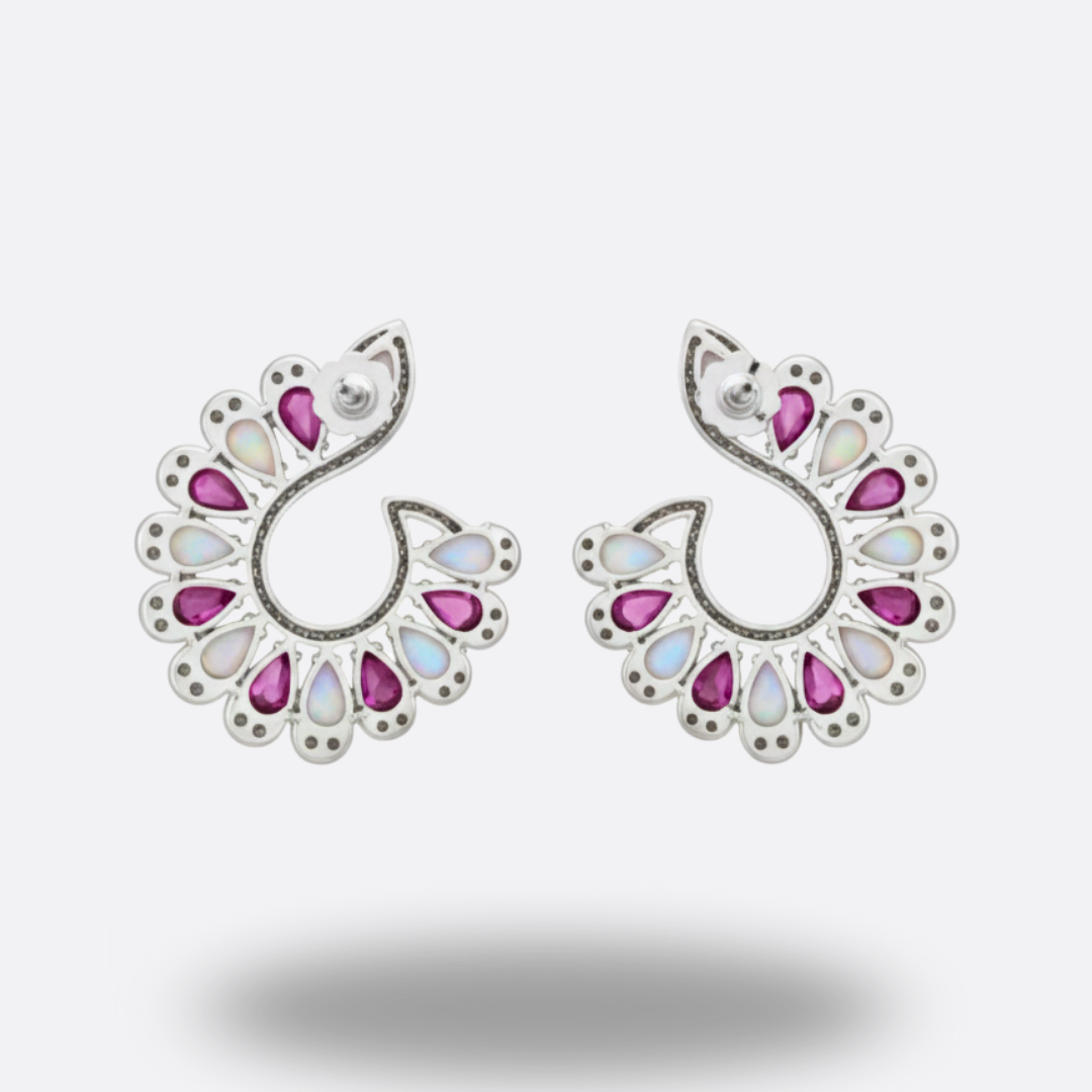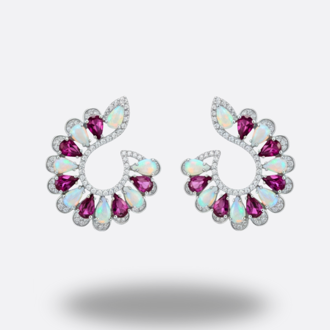 Wie ein fallender Lichtstrahl – Tropfenform und Opalfarben in Bewegung. Diese Ohrringe erzählen vom Fluss des Lebens, eingefasst in feines 925 Silber.