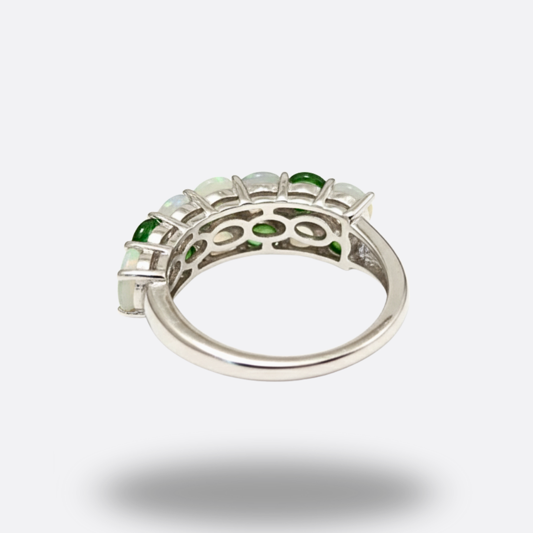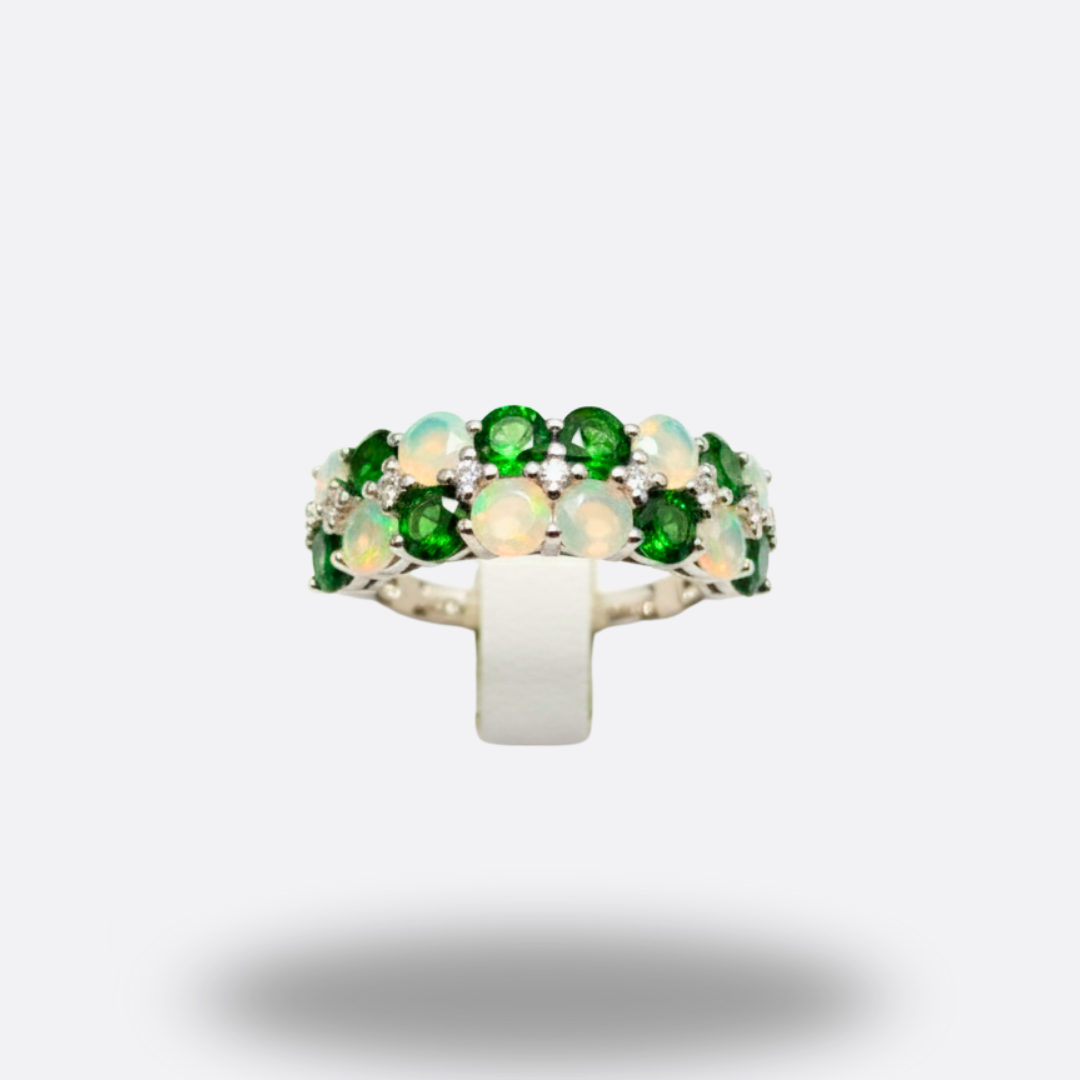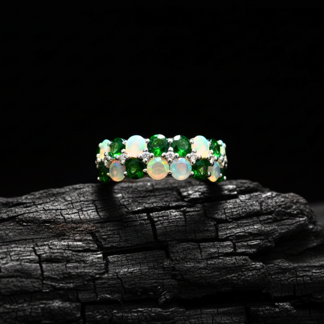 Ein Farbkreis auf der Hand – rund gefasste Opale auf Silber. Dieser Ring wirkt ruhig und ausdrucksstark zugleich – für alle, die mit Klarheit strahlen.